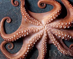문어 다리의 끝 부분에는 작은 흡반이 있습니다. 이 흡반들을 부드럽게 문질러 씻어주면서 잡티를 제거해 줍니다. 만약 흡반이 크고 강하게 붙어 있는 경우, 작은 칼을 사용해 제거할 수 있습니다. - 점액질 제거